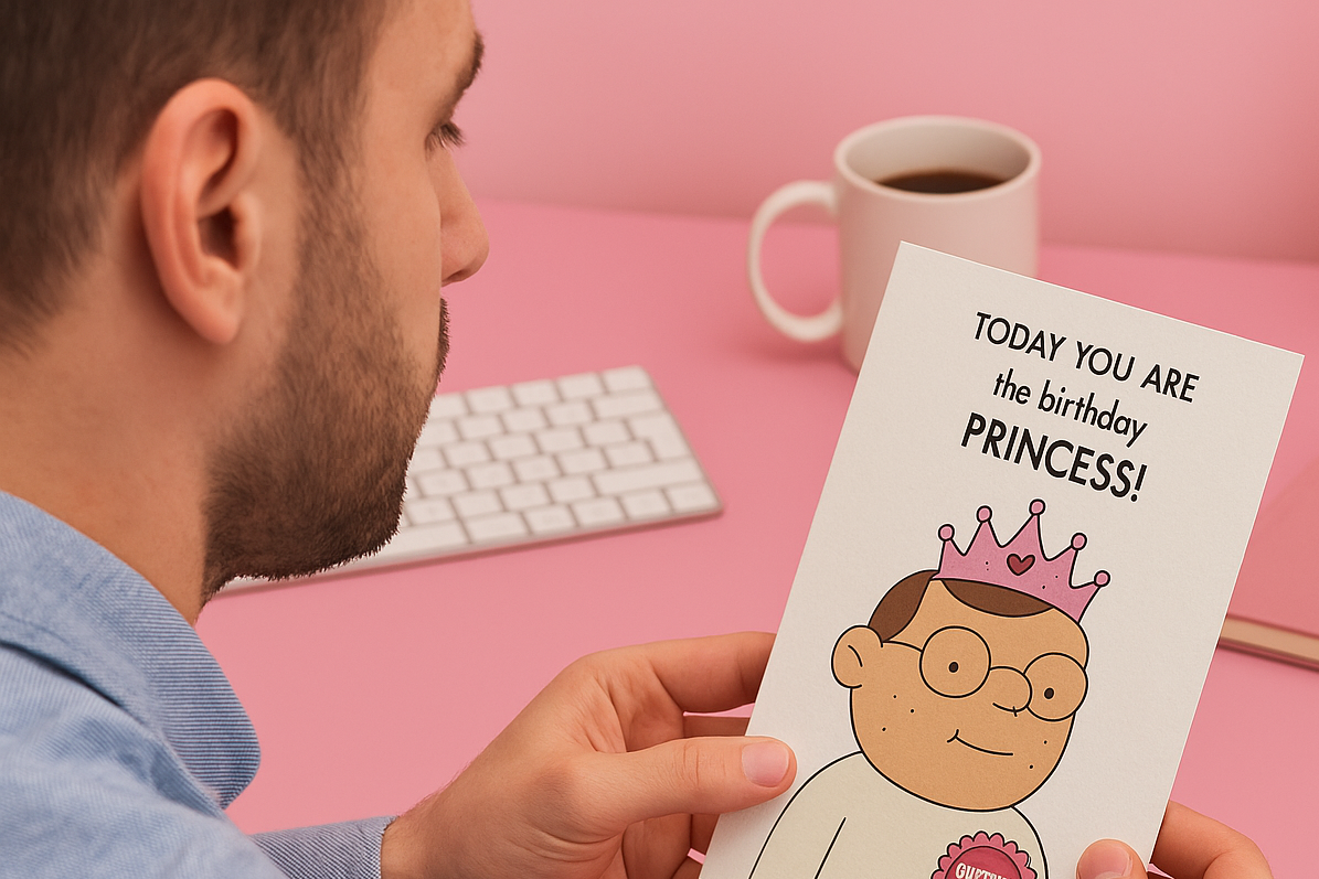 Funny Birthday Princess Greeting Card: Humorous Design Man Dressed As Princess, Card For Boyfriend, Partner, Friend