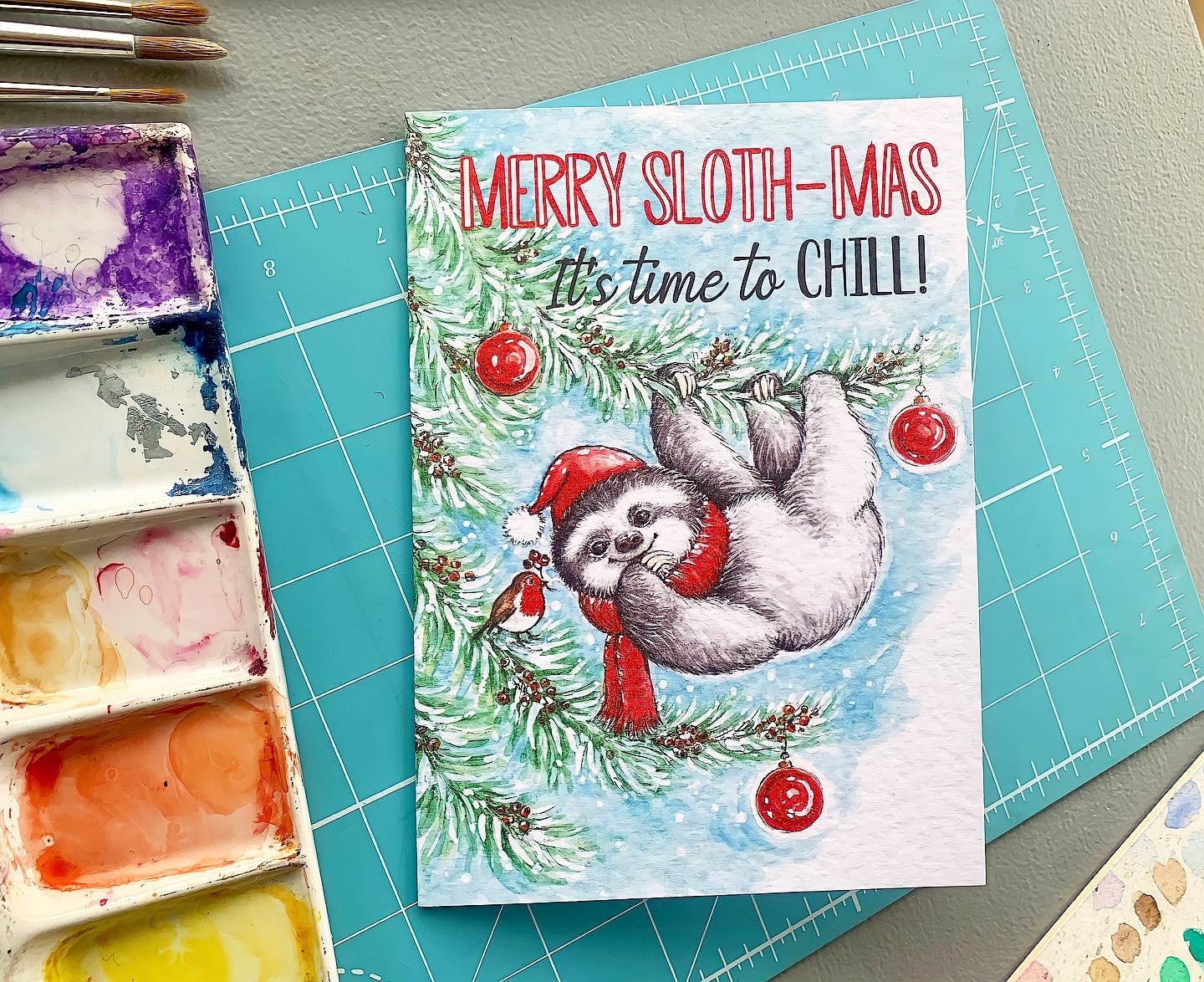 Beautiful Sloth Christmas Card - Merry Sloth-Mas Greeting Card Christmas Card Pack - Xmas Card - It's Time To Chill!, Season's Greetings