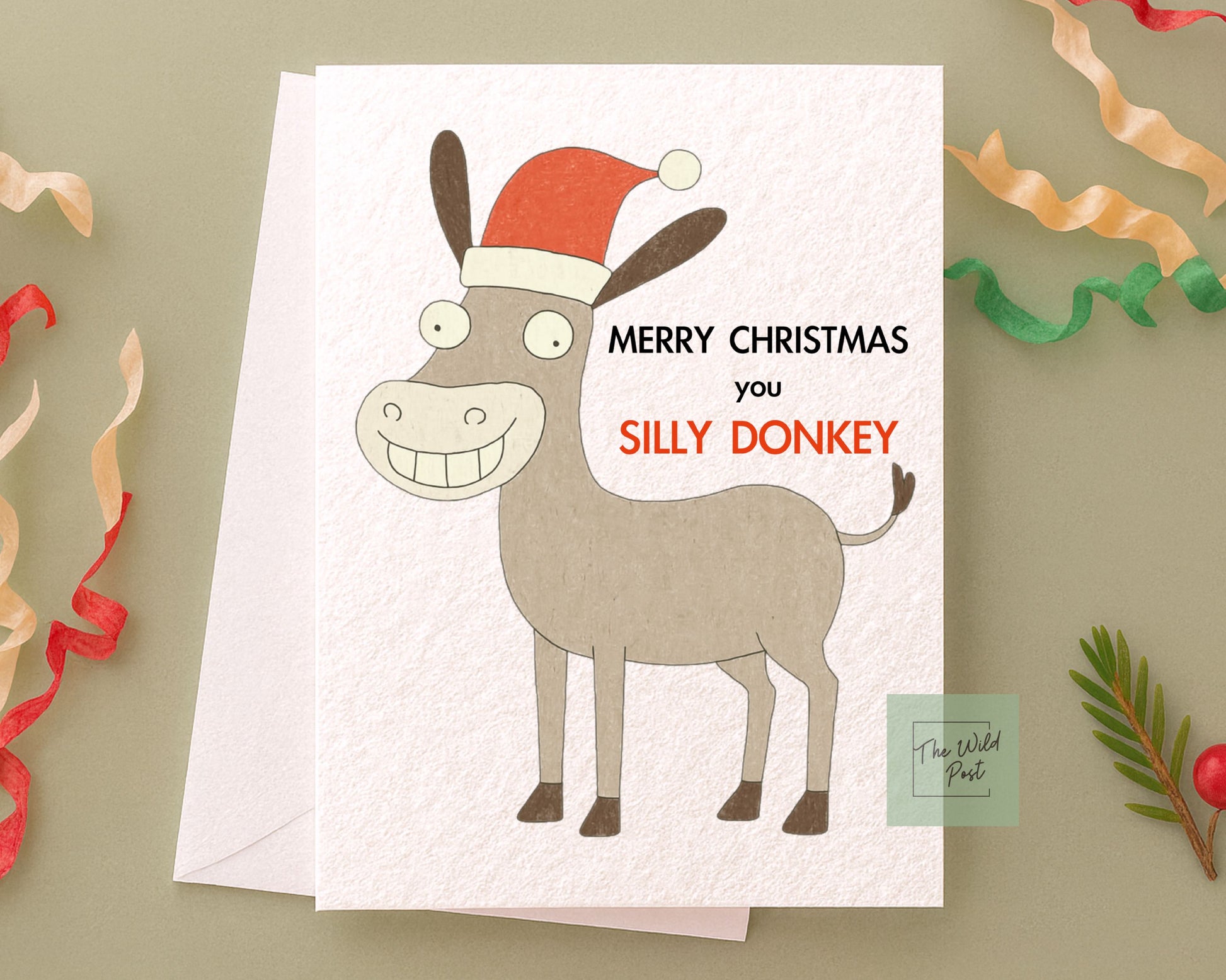 Funny Donkey Christmas Card: Silly Donkey Christmas Greeting Card, Gift For Sibling, Friend