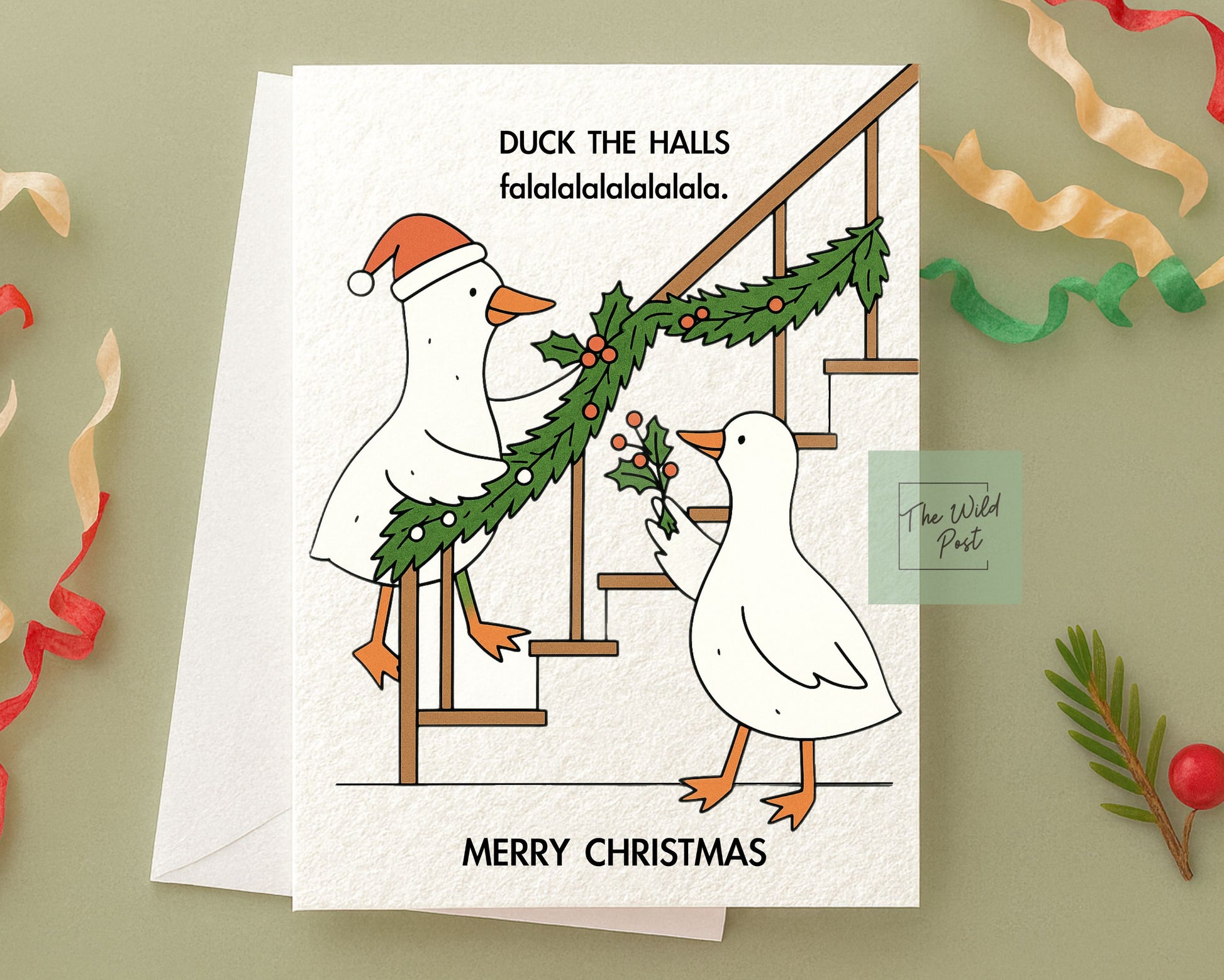 Funny Duck Christmas Card: Deck The Halls, Cute Ducks Humorous Greeting Card