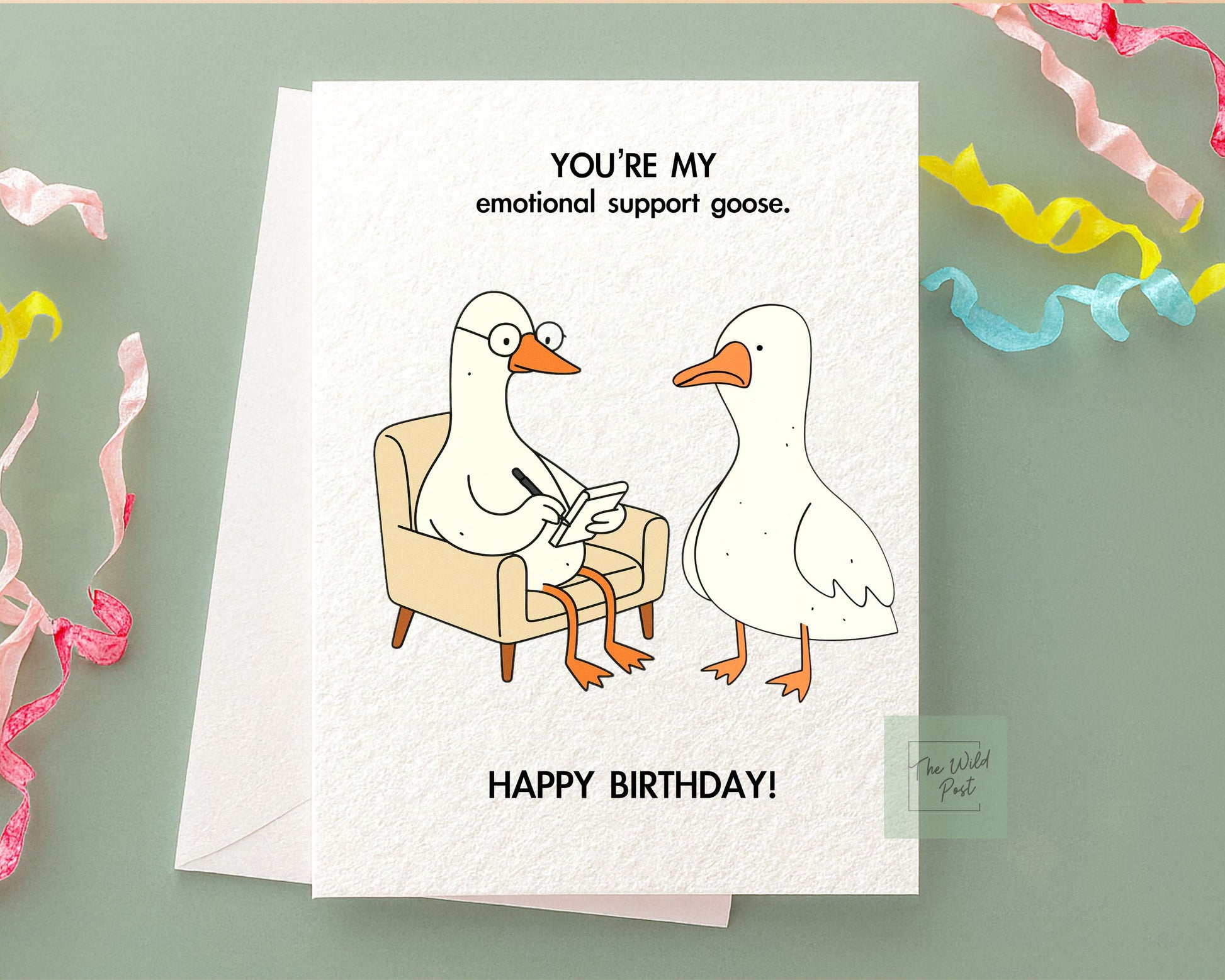 Funny Emotional Goose Birthday Card: Therapy Goose Comforting Friend, Cute Card For Best Friend, Sibling, Funny Geese Greeting Card