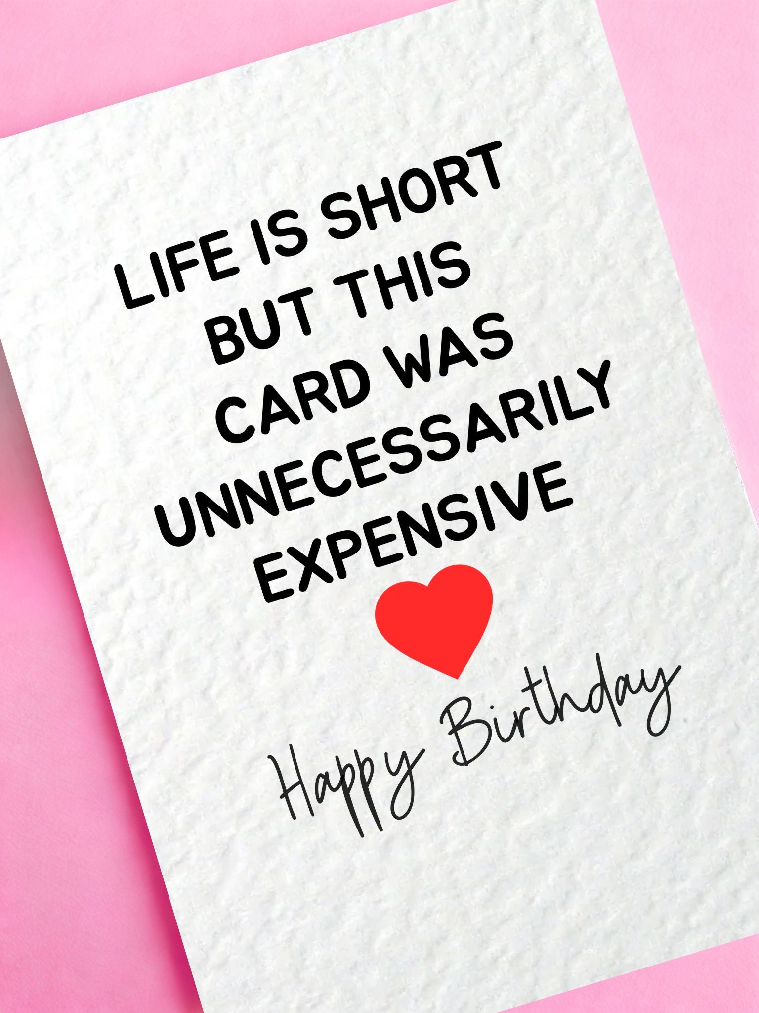 Funny Greeting Card, Life Is Short But This Card Was Unnecessarily Expensive Just Because, Birthday Card For Partner, Friend, Sibling