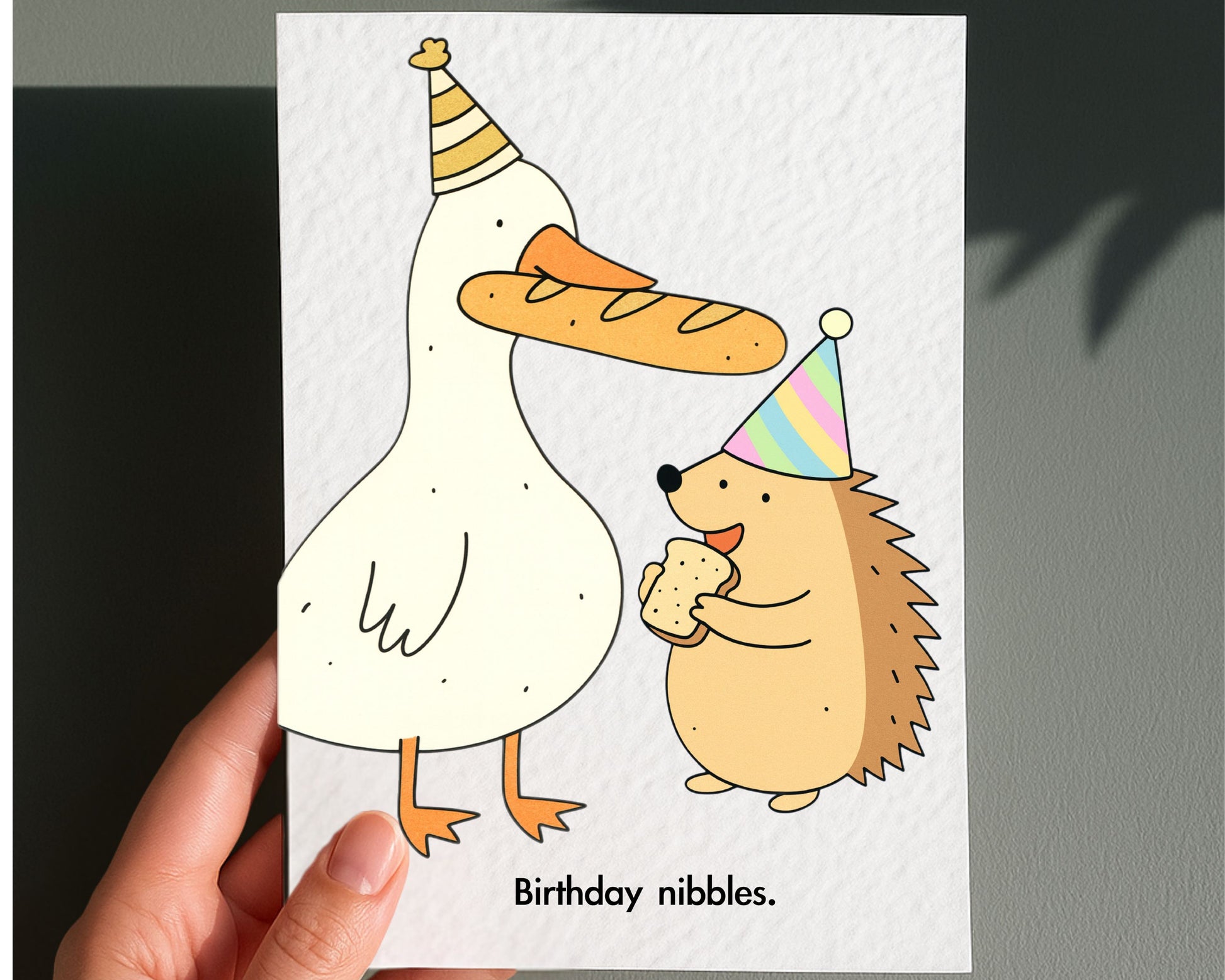 Funny Silly Goose And Hedgehog Birthday Card: Humorous Design, Birthday Nibbles, Cute Animal Greeting Card