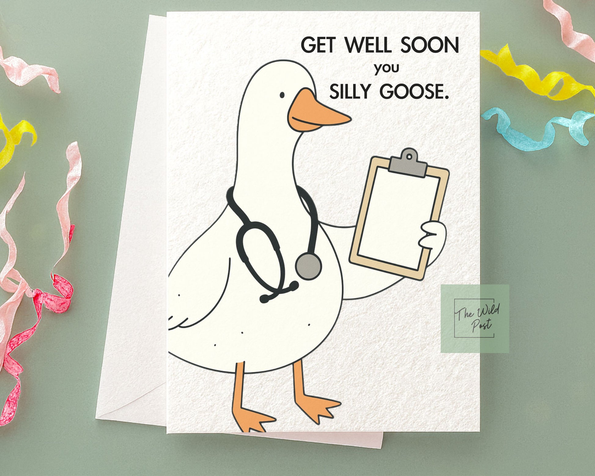 Get Well Soon Goose Card, Cute Goose Feel Better Soon Card