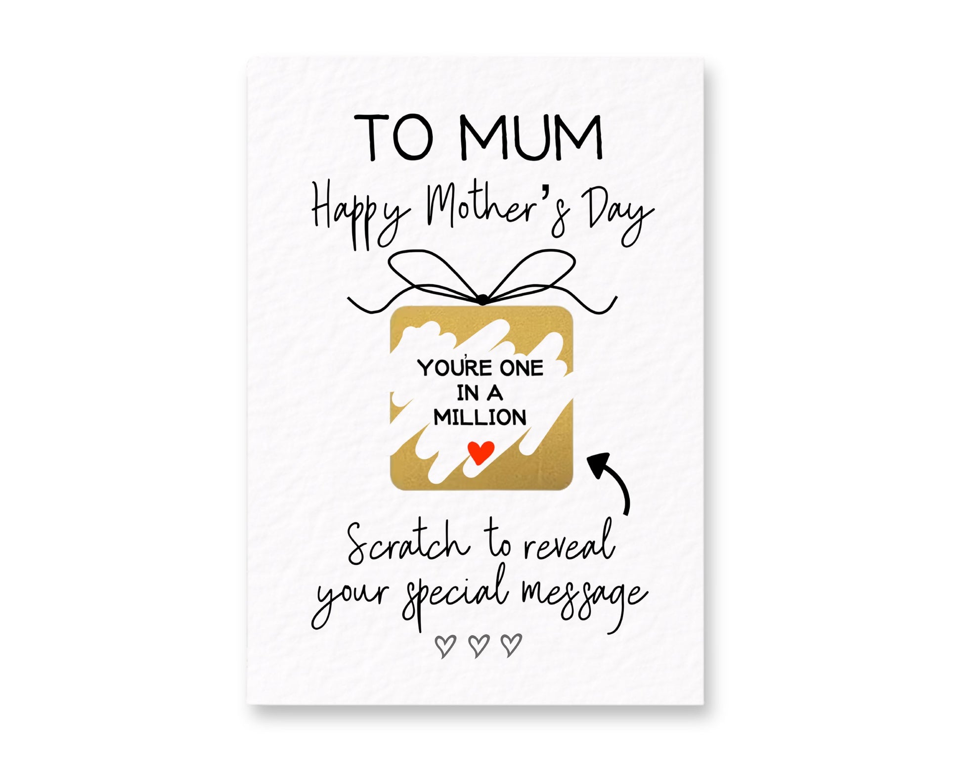 Mother's Day Surprise Scratch Card, You're One In A Million, Greeting Card, Surprise Gift, Gold Gift Present Box