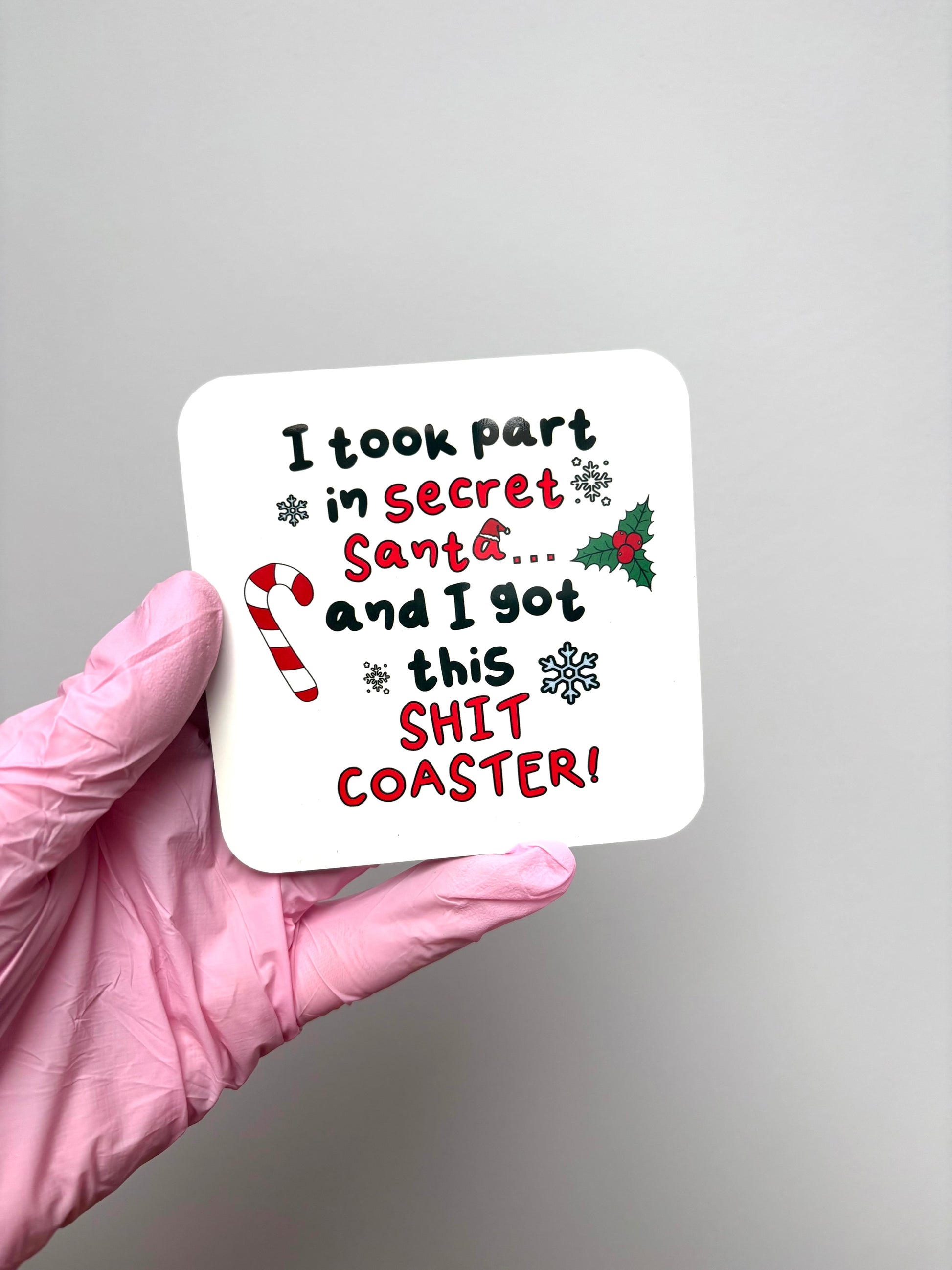 Secret Santa Funny Coaster, Christmas Gift, Funny Coaster, Novelty Coaster, Rude Gift For Colleague, Friendship Gift.