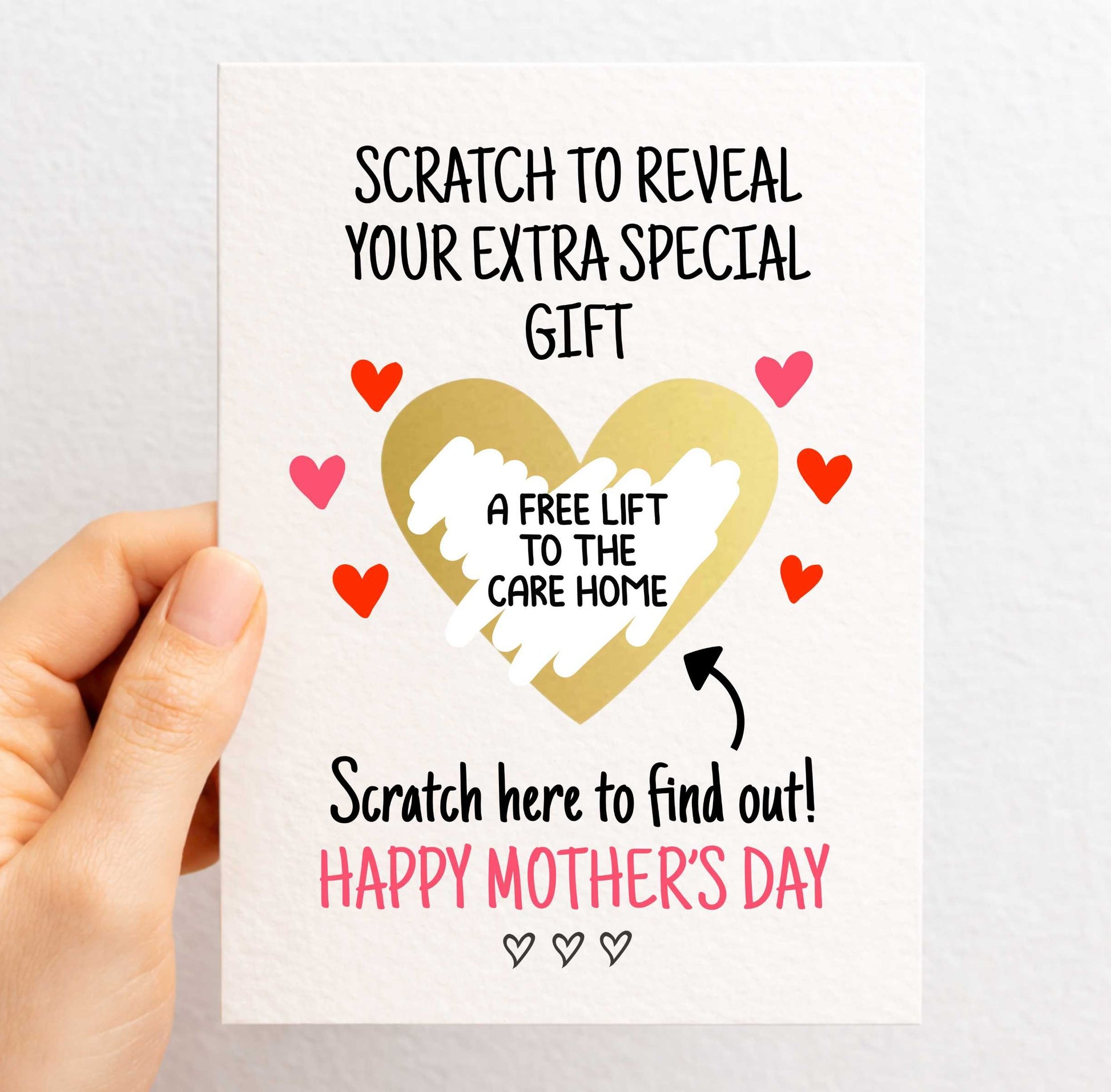 MOTHER'S DAY Surprise Scratch Card, Gift Reveal, Funny Greeting Card, Surprise Gift, Red Heart
